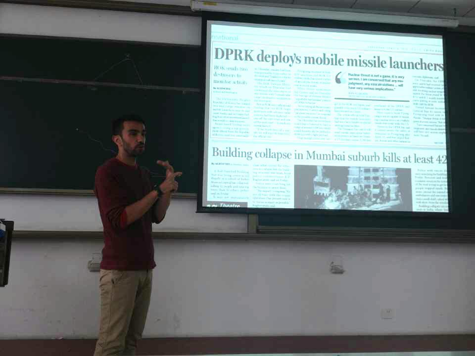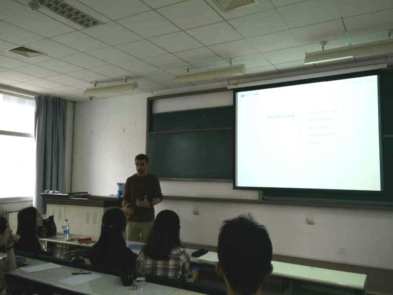 2015年5月6日,外語新聞社邀請葡萄牙留學生Paulo在良鄉校區理科教學樓210教室舉辦了主題為英語新聞采訪與寫作的專題講座。