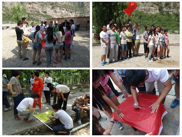 24日上午,學院特邀人文學院2014級輔導員李志鵬老師作為指導顧問,在物理學院良鄉校區輔導員崔強老師的帶領下,經過近兩個小時的車程,全院14級本科生及部分高年級學生共70余人順利抵達七渡素拓基地。短暫的休整,全體成員被隨機分成 “巨人”、“城管”、“康師傅”三個組。隨后便在教練的帶領下開始了一天的素拓活動。經過短暫有效的破冰活動,團隊開始選隊長、取隊名、編隊歌、寫對訓、繪隊標,大家集思廣益,很快完成了第一項團隊任務,并在隊長的帶領下向大家做了精彩的展示。