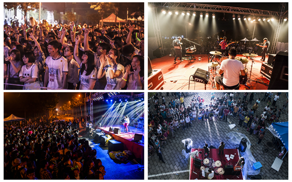 5月17日,時(shí)有時(shí)無(wú)的陣雨并沒(méi)有澆滅大家的熱情,由第十二屆藝術(shù)節(jié)與第九屆社團(tuán)文化節(jié)聯(lián)名舉辦的“北湖音樂(lè)節(jié)”在良鄉(xiāng)校區(qū)北湖南岸熱力開(kāi)唱。經(jīng)過(guò)報(bào)名、遴選,活躍在北理工舞臺(tái)上的“北理轟炸機(jī)”、“山海鯨”、“Adobe”以及來(lái)自北京科技大學(xué)的“娃翻天”四支校園樂(lè)隊(duì)在主舞臺(tái)“北湖舞臺(tái)”上演唱了諸多原創(chuàng)及改編作品。而在一側(cè)的“青年力量”舞臺(tái)上,更多獨(dú)立校園音樂(lè)人及樂(lè)隊(duì)藉此展示了他們驚人的才華。晚上19:00北湖音樂(lè)節(jié)進(jìn)入狂歡時(shí)段,在《中國(guó)好歌曲》節(jié)目及全國(guó)各大音樂(lè)節(jié)大放異彩的“A公館”樂(lè)隊(duì),在國(guó)際搖滾界擁有相當(dāng)影響力的搖滾音樂(lè)人邊遠(yuǎn)先后登臺(tái)。最后壓軸登場(chǎng)的是目前活躍在國(guó)內(nèi)的一線樂(lè)隊(duì)“Carsick Cars”,當(dāng)臺(tái)下聽(tīng)眾得知這支著名的樂(lè)隊(duì)成立于十年前的北理工校園,樂(lè)隊(duì)創(chuàng)始人及領(lǐng)袖張守望是北理工2005級(jí)的學(xué)長(zhǎng)時(shí),紛紛報(bào)以歡呼與尖叫,整個(gè)北湖湖畔被音樂(lè)點(diǎn)燃。