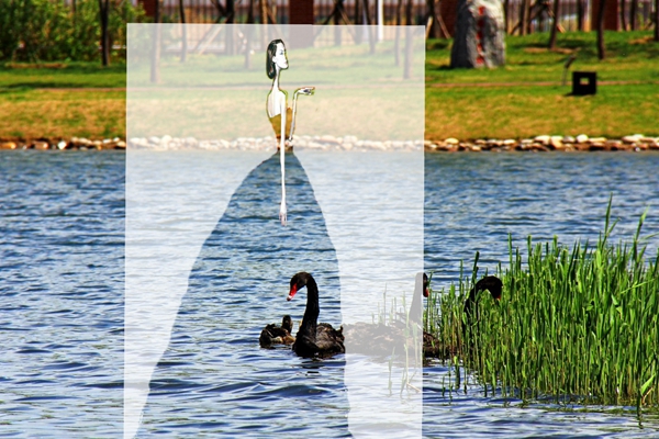 水岸與水中,實(shí)物與倒影。虛虛實(shí)實(shí),真真假假,倒也是別樣的設(shè)計(jì)。