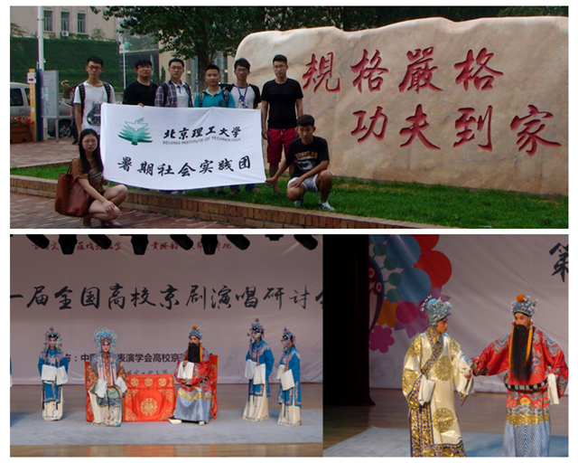 在接到比賽邀請后,校團委牽頭組織大學生藝術團成員及在校京劇愛好者,排演傳統京劇折子戲《龍鳳呈祥》。同時考慮到全國高校學生京劇團體齊聚一堂的好機會,校團委還在劇組人員基礎上組建暑期社會實踐團,提前擬定調研提綱、編寫調查問卷,開展題為《基于校園文化藝術活動開展大學生中華傳統文化教育研究—以京劇為例》的社會調研,目前基于本次社會實踐完成的調研報告已獲得北京市優秀社會實踐成果。