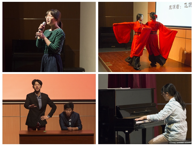 本次晚會節目多樣,有優雅、富有中國風的舞蹈《禮儀之邦》,將中國文化的魅力牢牢吸引住了觀眾的眼球;有動聽的歌曲《讓一切隨風》和《神話情話》,曲調婉轉動聽,展示了粵語文化的獨特魅力;有話劇《響當當》,將整個會場營造了幽默輕松的氣氛;大一新生李安一、許潤逸、鐘冰潔、侯宇航更為大家帶來了歌曲串燒節目,使整個會場飽含了暖意。歌曲、舞蹈、魔術、樂器演奏,整場晚會盡現學子們的能歌善舞。最后,中關村2012級本科生彭毅恒獻唱的《七里香》將晚會推向了高潮,也顯示了兩校區間、高低年級學生間的深深情意。
