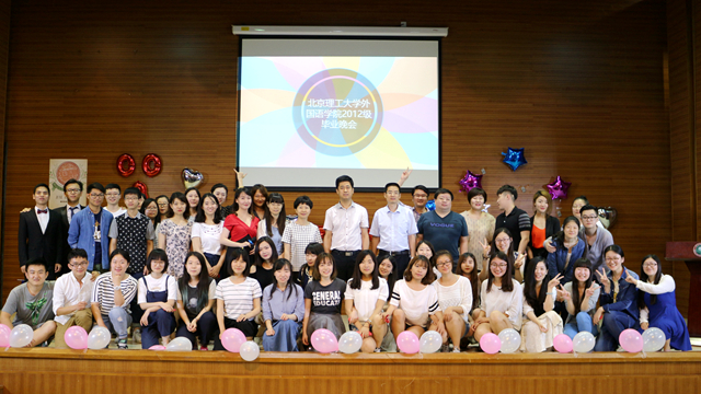編輯:卞廣為 審核:吳文君 閱讀次數:2016年6月17日18:00,北京理工大學外國語學院2012級本科生畢業晚會在良鄉校區圖書館音樂廳成功舉行。外國語學院2012級本科全體畢業生,以及2013-2015級學生與教師代表齊聚一堂,共同參與此次盛會。出席本次晚會的嘉賓有:外國語學院黨委書記楊暉,院長李京廉,學院黨委副書記、副院長吳文君,日語系主任周晨亮,學院團委書記兼2012級輔導員周芳集,輔導員卞廣為、由耀爽,以及設計學院、物理學院等兄弟學院的輔導員。