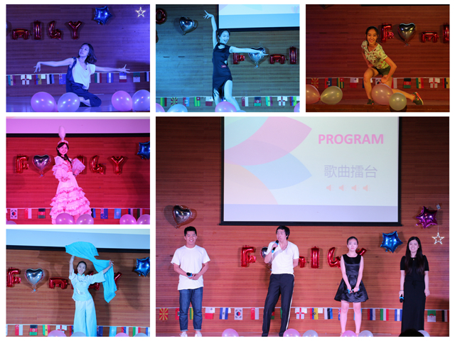 之后,一系列精彩節目相繼上演。郝文超、胡曉、王萬儀帶來舞蹈串燒,相繼呈現小橋流水的溫婉、裙裾翩躚的性感和江南style的動感。之后的歌曲擂臺也是精彩紛呈,劉天媛高音深情款款,《她說》等不到天黑;王伊瑩清新唱響有人風雨不離一直守護的《小幸運》;李天達頭戴黑色禮帽開啟炫酷歌舞,曾航遠溫情脈脈《run to you》,之后的四人合唱更是引發全場掌聲雷動。接下來的獨舞中,王萬儀古典民族舞回旋顧盼間含羞輕羅小扇,阿拉依哈薩克舞步熱情開朗時盡顯異域風情。