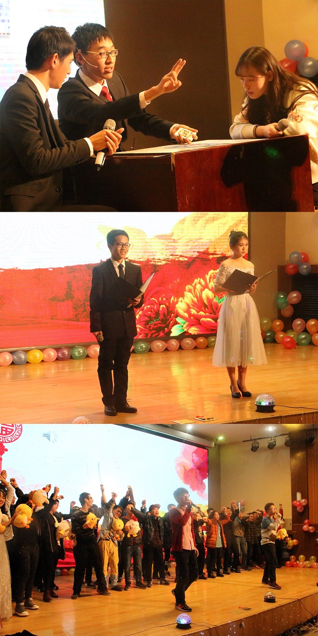 晚會在研究生樂隊表演的《告白氣球》的節奏中正式開始。