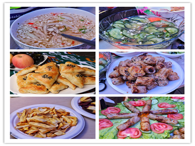舞臺上,能歌善舞的烏茲別克斯坦同學邀請現場觀眾走上舞臺加入表演,大家和著“Hello Uzbekistan”的音樂左右搖擺,沉醉其中;舞臺下,哈薩克斯坦的同學們組織的拔河比賽也讓現場氣氛熱烈非凡。現場觀眾自由組隊積極參賽,“加油,加油”的吶喊聲此起彼伏;展臺邊,各國美食琳瑯滿目,主辦國同學熱情地將自己國家美食分享給現場觀眾,“太好吃了”“I like it so much!” “I want more, thank you!” 著實讓現場觀眾流連忘返。身穿莎莉的巴基斯坦姑娘們更是為現場觀眾手繪漢娜紋身,老師們、同學們都樂在其中,通過本次文化節切身體驗了一把“國際范”。