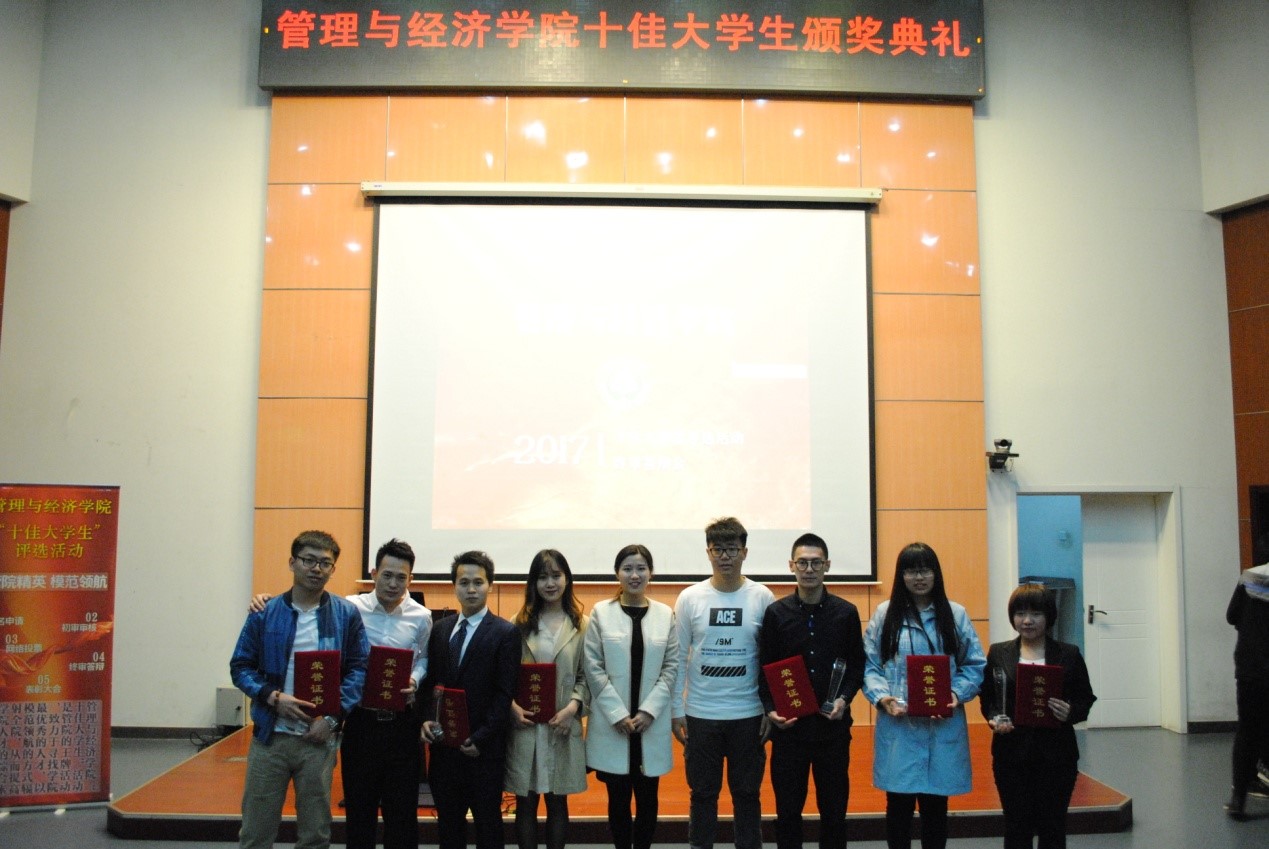 2017年4月初,管理與經濟學院于良鄉校區舉行了十佳大學生頒獎典禮,管院團委書記張瑞、2016級輔導員莊杰出席了本次典禮的現場并為獲獎選手頒獎。期間獲獎選手們上臺領獎并進行了獲獎展示和經驗分享。他們分享的寶貴經驗使臺下的同學們受益匪淺。頒獎典禮成功舉辦,為2016年度“十佳大學生”評選活動畫上了圓滿的句號。