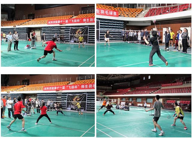 師生羽共,激情飛揚(yáng)。4月20日至27日,北理工材料學(xué)院第十一屆“飛揚(yáng)杯”師生羽毛球賽在北京理工大學(xué)體育館火熱舉行。“飛揚(yáng)杯”是材料學(xué)院的傳統(tǒng)體育賽事,本屆羽毛球賽由材料學(xué)院研究生會主辦,活動得到了學(xué)院廣大師生的大力支持和踴躍參與。比賽采用團(tuán)體賽形式,來自學(xué)院共十二支隊(duì)伍百余名師生以課題組或班級等形式組隊(duì)參加了男單、女單、男雙、女雙、混雙多個(gè)項(xiàng)目的競技。