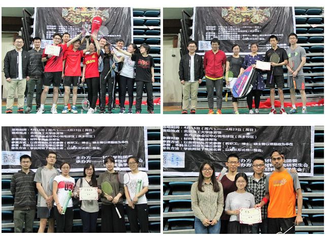 參賽師生,時(shí)而兇猛扣殺,時(shí)而輕盈吊球,盡顯風(fēng)采,展現(xiàn)了積極向上的精神和勇于拼搏的優(yōu)良品質(zhì)。經(jīng)過為期一周的小組賽、四分之一決賽、半決賽和總決賽共20場賽事的精彩角逐, B&M隊(duì)、13456隊(duì)、能源材料隊(duì)和Rome隊(duì)脫穎而出,進(jìn)入四強(qiáng)。