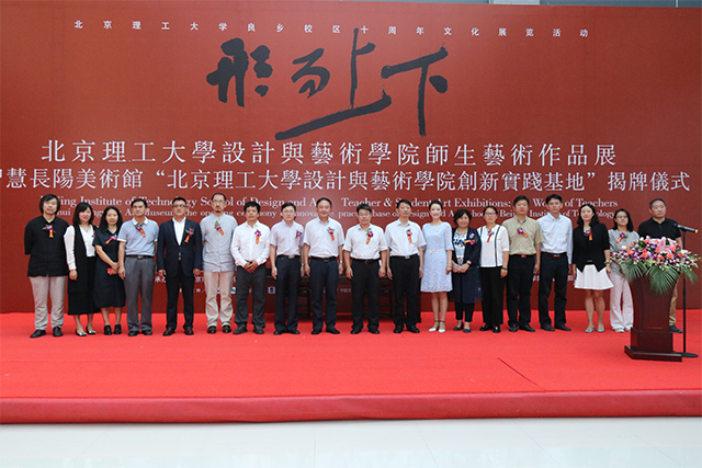 編輯:歐陽哲 審核:楊建明 閱讀次數:2017年9月16日下午,由北京理工大學主辦的“北京理工大學良鄉校區十周年文化展覽活動:形而上下——北京理工大學設計與藝術學院師生藝術作品展”暨智慧長陽美術館“北京理工大學設計與藝術學院創新實踐基地”揭牌儀式于北京智慧長陽美術館舉行。北京市房山區副區長齊文東、北京理工大學副校長王曉鋒、良鄉高教園區管委會黨組書記、常務副主任路鵬、房山區文化委員會黨組書記、主任冀顯江、房山區長陽鎮鎮長劉文靜、北京理工大學設計與藝術學院院長楊建明、設計與藝術學院黨委書記郭宏、北京理工大學良鄉校區管理處處長朱光輝、智慧長陽文化產業基地董事長楊昆、智慧長陽美術館館長楊慧、河北省美術家協會主席 祁海峰、北京航空航天大學人文與社科高等研究院院長、北航藝術館館長蔡勁松、首都師范大學美術學院副院長孫滌、河北師范大學美術與設計學院教授祁鳳霞、山東省山水畫藝委會委員、煙臺畫院畫家王大力、江蘇無錫市青年美協副主席、無錫市書畫院畫家郭瑞卿、中央數字電視書畫頻道教學部主任張釗、北京理工大學 設計與藝術學院副院長王東聲、設計與藝術學院副院長姬勇等領導嘉賓出席了開幕式和揭幕儀式。北京理工大學設計與藝術學院副書記、副院長孫飛主持了開幕式。