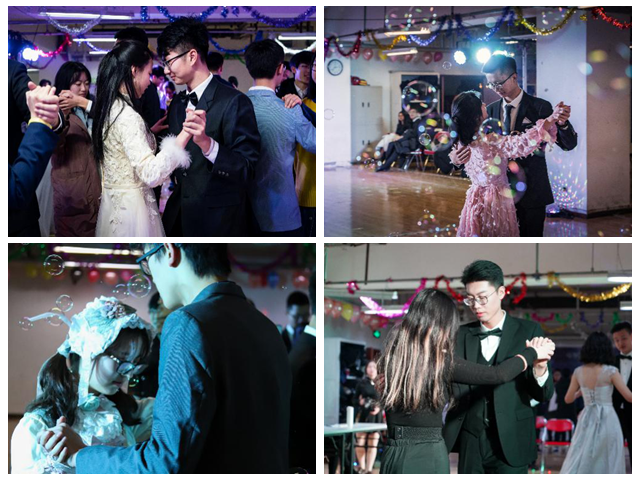 舞池中央的音樂響過一曲又一曲,談笑歡鬧間,舞會逐漸接近尾聲。在溫暖柔美的氛圍中,主持人示意同學們以“手環匹配”的形式尋找舞伴,共同完成“最后一舞”,為本次舞會畫上了圓滿的句號。