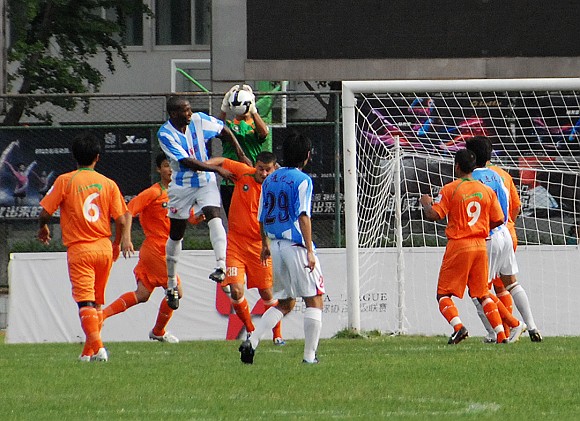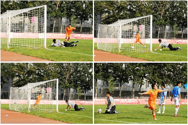 在上半場補時階段,沈陽東進連續(xù)利用角球定位球等攻勢向北理工腹地發(fā)動猛攻,但北理門將孫程卻充分發(fā)揮了其身高力量優(yōu)勢,高接抵擋將力保本隊城門不失。上半場北理工1比0領(lǐng)先沈陽東進。