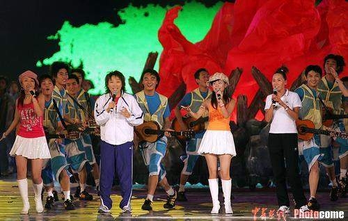 更大的驚喜引燃了全場的歡呼——杜麗、王義夫、張怡寧、張國政、王旭、陳艷青6位在本屆奧運會上勇奪金牌的選手,風塵仆仆地趕來,與祖國各地的大學生一同分享青春運動盛會的歡樂。