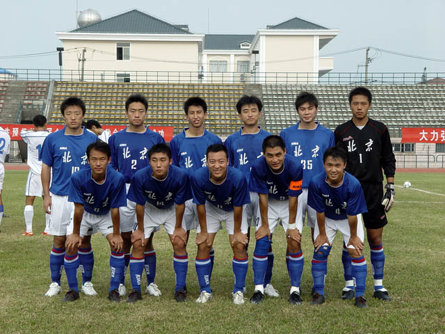 8月28日,大運會比賽首日,以我校足球隊為班底的北京市大學生足球隊的賽前合影。