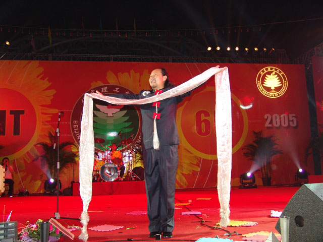 文藝晚會的壓軸大戲是我校兼職教授、著名蒙古族歌唱家騰格爾和他的“蒼狼”樂隊的勁爆演出。
