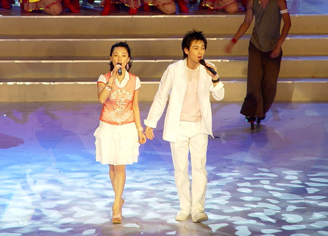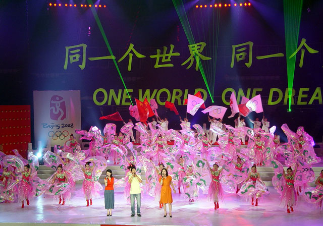 著名歌星劉歡、那英共同把2008奧運會主題口號演繹為同名歌曲《同一個世界,同一個夢想》