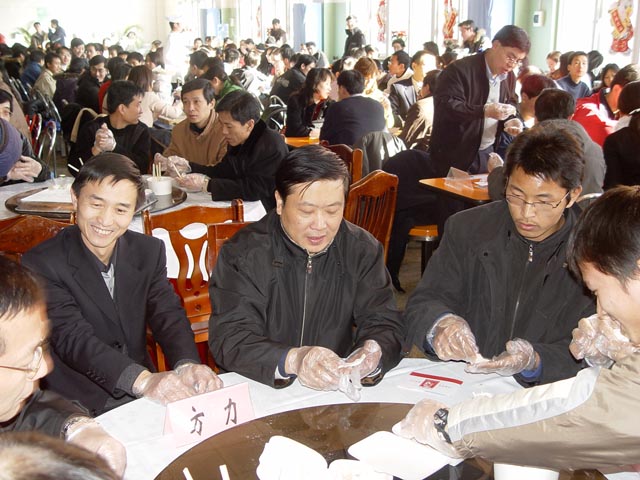 我校校長匡鏡明同志等校領導和團中央書記處第一書記周強同志、全國學聯、北京市領導及首都各大院校的老師和學生一起動手包餃子、看節目。