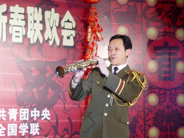 在悠揚的薩克斯聲中,來自解放軍軍樂團的演員張平江以一曲《回家》在學生中引起了共鳴,學生們興奮、激動的神情使人難以忘懷。
