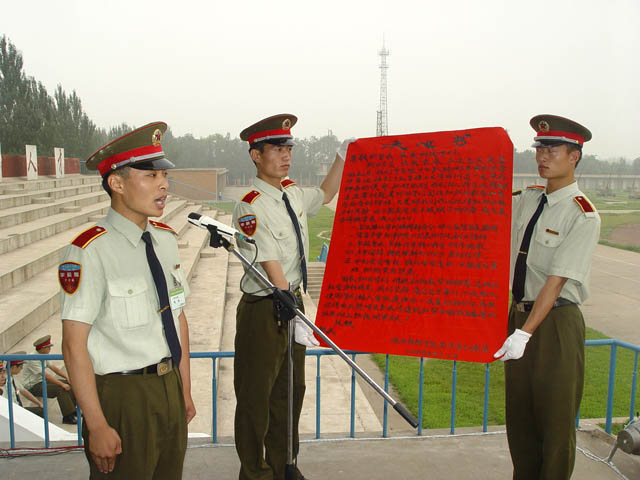 7月18日上午,北京理工大學2004年學生軍訓開訓典禮在宣化炮兵指揮學院舉行。