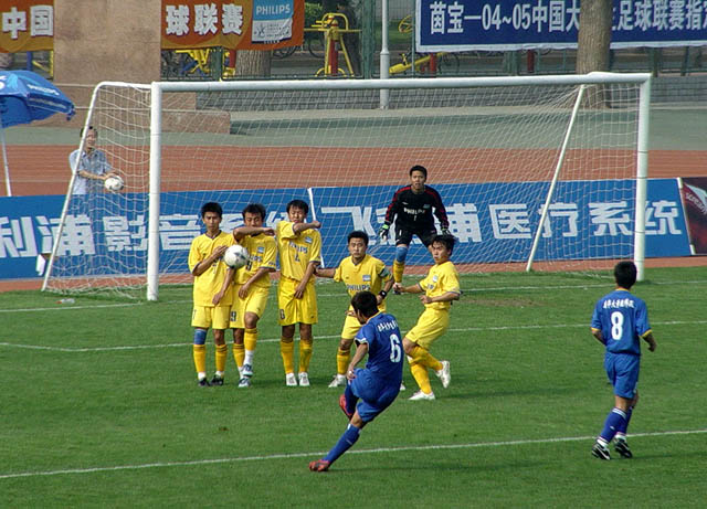 在去年上海大運(yùn)會(huì)足球賽場(chǎng)上,我校足球隊(duì)曾與東華大學(xué)隊(duì)兩次交手,首場(chǎng)比賽和冠亞軍爭(zhēng)奪賽均打成了0:0,只是在決賽的加時(shí)賽后點(diǎn)球決勝時(shí)以微弱優(yōu)勢(shì)負(fù)于對(duì)手,屈居亞軍。