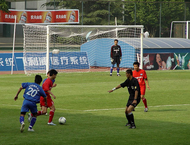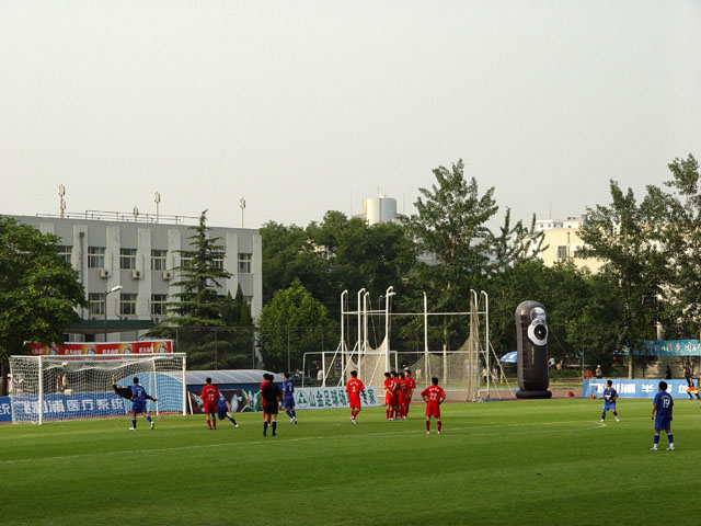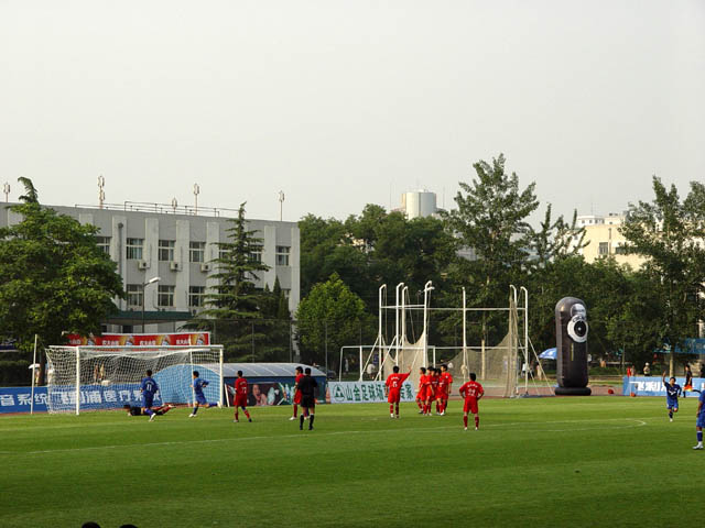 球向著同濟大學守門員守的半邊直飛而去,直接任意球破門,北京理工大學在終場前扳回一球,為三屆冠軍挽回一點面子。