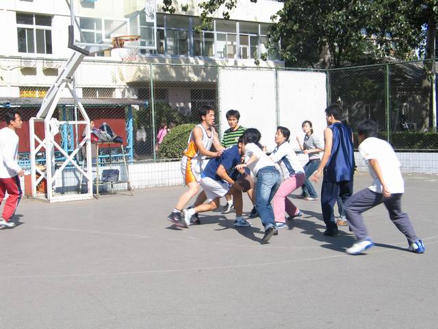 這次籃球賽從策劃之初就得到了同學們的熱烈響應。接到比賽賽程表后,各班班委就及時行動起來,廣泛發動同學,利用課余活動時間,組織了切實有效的訓練。國慶假期期間,在校內各籃球場經常可以看到男女同學以班為單位鍛煉的身影。經過兩周的比賽訓練,廣大同學特別是女生的身體素質得到了明顯改善;而中場由女生參加的罰籃比賽,在增加比賽的趣味性的同時,更進一步提高了各班女生的參與和互動,增強了班級的凝聚力, 達到了預期效果,受到了同學們的好評。