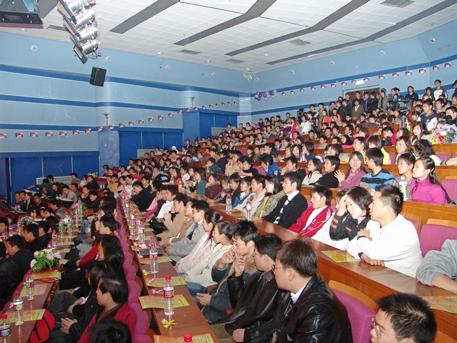 葉子已漸漸變黃,微風中略帶了些涼意,秋天的腳步已經來臨。秋天是收獲的季節,是檢閱成績的季節,秋天的收獲是對春天的一種回報,秋天是對成績的一次檢閱。11月26日,中心教學樓一層報告廳座無虛席,我校2005年“深秋歌會”決賽就在這個收獲而又檢閱的季節里拉開了帷幕。