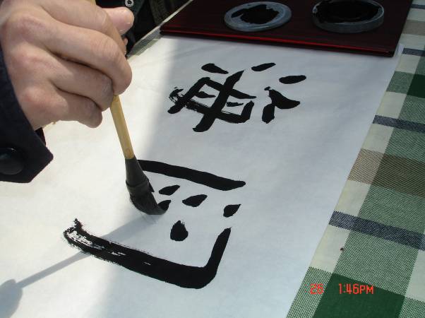 雖然下午風較大,但舞動的宣紙上更有舞動的文字
