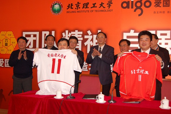 2007年3月9日,正在積極備戰中甲的北京理工大學足球隊,與國內數碼領導企業華旗資訊聯合在北京理工大學國際教育交流大廈召開“團隊精神,自強不息——愛國者和北理工聯合打造愛國者大學生足球隊新聞發布會”,除了宣布北理工隊將為中甲聯賽積極備戰,同時也宣布了華旗資訊自主民族品牌愛國者正式冠名該球隊,2007賽季北京理工大學隊將以“北京愛國者大學生足球隊”的名義征戰中甲賽場。