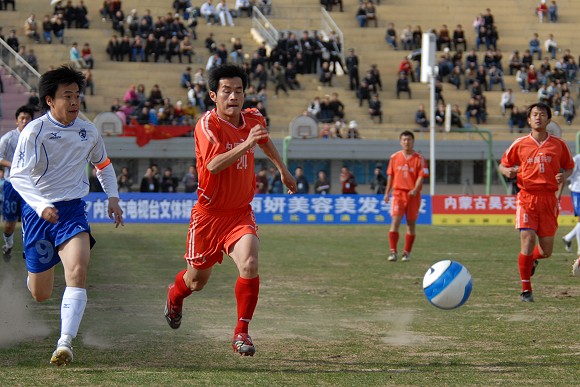 開場后,呼和浩特隊主要在左路展開攻勢。第22分鐘,愛國者大學生隊11號王強在右路形成突破,但被對方38號袁哲及時解圍。第27分鐘,愛國者大學生隊獲得角球,8號隊長袁微傳向遠點,跟上的隊友將球傳入禁區,但用力過大出了底線。第33分鐘,愛國者大學生隊在對方禁區中路進行配合后傳入禁區,21號張淼門前搶點未果,這也是學生軍最有威脅的一次進攻。第35分鐘,呼和浩特隊逼得角球,隊長9號張考主罰,新加盟的3號南斯拉夫外援頭球高出。