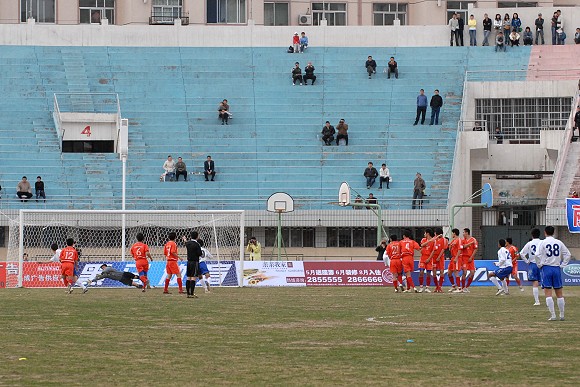 第73分鐘,呼和浩特隊在禁區前再次得到任意球機會,在兩名隊友的跑動掩護下,29號巴西外援威廉大力施射,球帖著草皮直奔網窩,3-0!