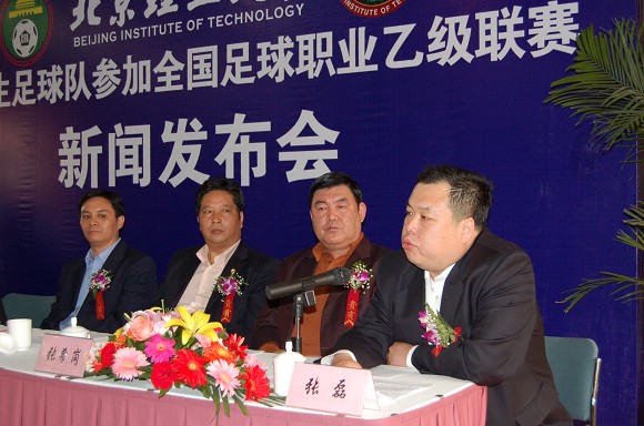 日前,我校大學生足球隊參加全國足球職業乙級聯賽新聞發布會在國際教育交流中心多功能廳舉行,中國大學生體育協會副秘書長張雁軍、中國足協青少部主任馮劍明、北京市教委副主任杜松彭、北京市足協管理中心主任李維淼、北京市足協秘書長張希崗、北京國安俱樂部副總經理魏克興、浪潮集團副總裁張磊等領導出席了新聞發布會。新聞發布會由我校宣傳部副部長楊海濱主持。