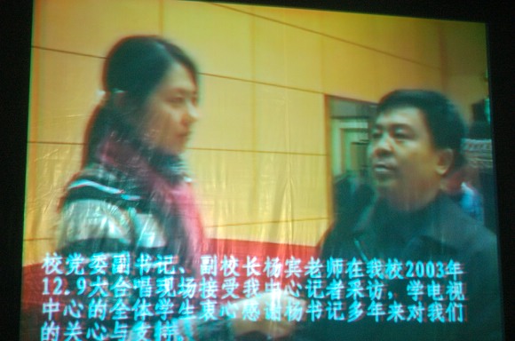 電視中心的歷任臺(tái)長(zhǎng)也從工作崗位中趕來(lái)參加了6周年的慶典晚會(huì),分別講述了電視中心的每一段發(fā)展歷程,在發(fā)言中他們表達(dá)了對(duì)學(xué)生電視中心迅速的壯大感到震撼和欣慰,并送出了他們對(duì)電視中心的祝福。