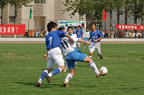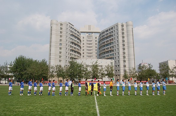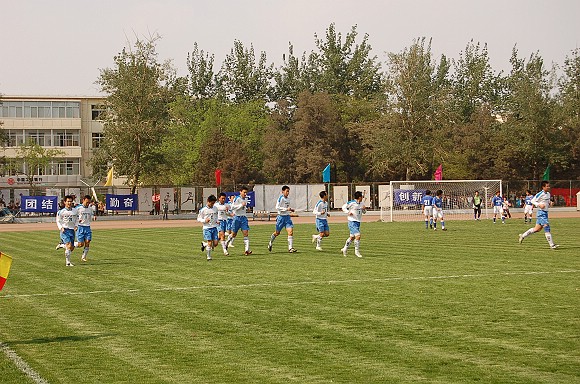 由于第一輪比賽輪空,所以此場比賽也是我校足球隊的首場比賽,對手為北京巴士隊,這場同城球隊的“德比之戰”吸引了5000多名球迷到場觀戰。