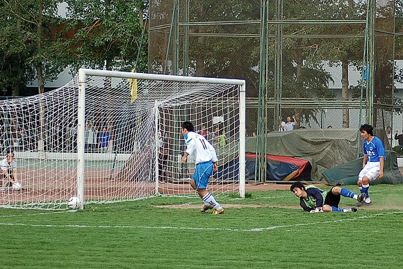 開場僅僅5分鐘,我校足球隊24號隊員楊陽頭球破門,首開紀錄。
