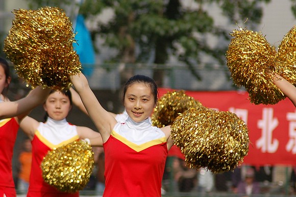 中場休息時,為調節場上的緊張氣氛,北京理工大學球迷拉拉隊進行了精彩的舞蹈表演。