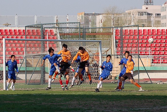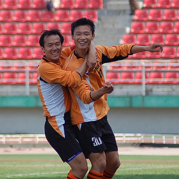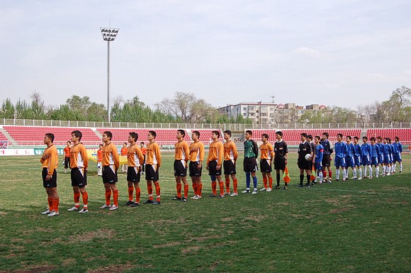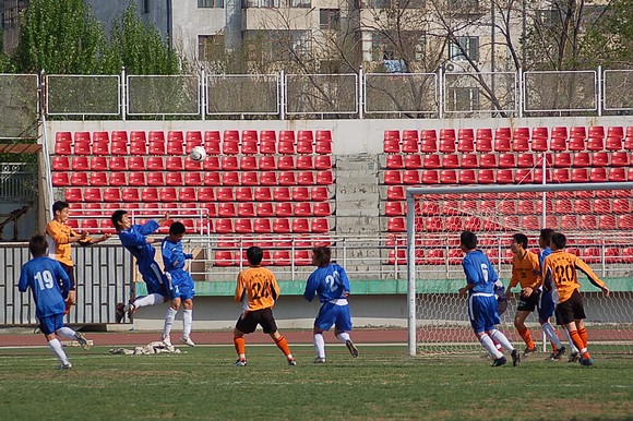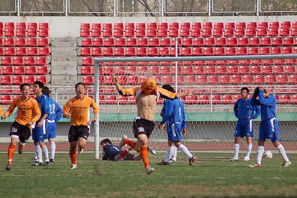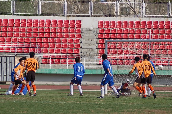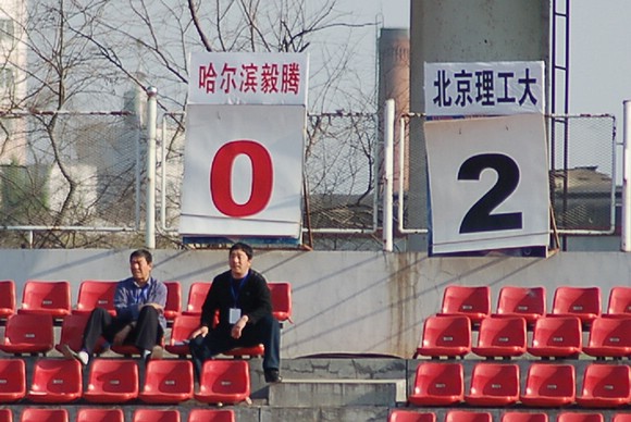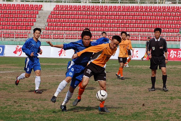 5月20日下午3:00,全國(guó)職業(yè)足球乙級(jí)聯(lián)賽第三輪比賽在哈爾濱工業(yè)大學(xué)體育場(chǎng)舉行,由我校足球隊(duì)(橙色球衣)客場(chǎng)迎戰(zhàn)哈藥毅騰隊(duì)(藍(lán)色球衣)。哈藥毅騰隊(duì)隊(duì)員大部分都是來(lái)自大連的職業(yè)球員,其中包括兩名重金引進(jìn)的中超球員,今年聯(lián)賽開(kāi)賽之前就已經(jīng)定下了沖甲的目標(biāo)。