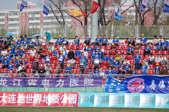 同屬國(guó)防科工委院校的哈爾濱工業(yè)大學(xué)也組織了百余名球迷前來(lái)為我校足球隊(duì)加油助威。