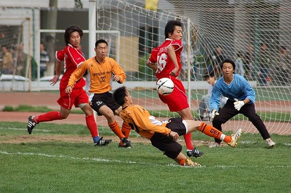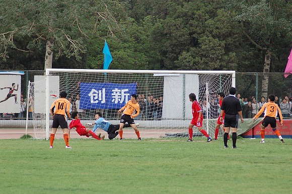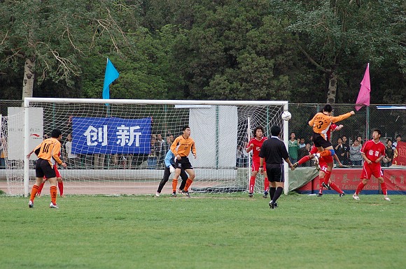 第35分鐘,在對方禁區中一陣混亂,3號姚遠跳出人群,漂亮的接球甩頭,比分改寫為4:0。