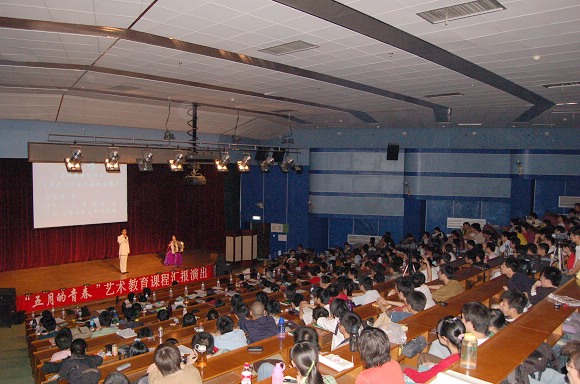 2004年5月藝教中心首次舉辦了藝術實踐課匯報演出,受到同學們的歡迎和教務處的肯定。今年是第二次舉辦,同學們再次表現出了極大的參與熱情。演出的所有節目均來自藝術教育中心開設的藝術選修課。老師們結合課堂教學訓練培養大學生的藝術實踐技能,并編排了一些節目進行讓同學們演出。