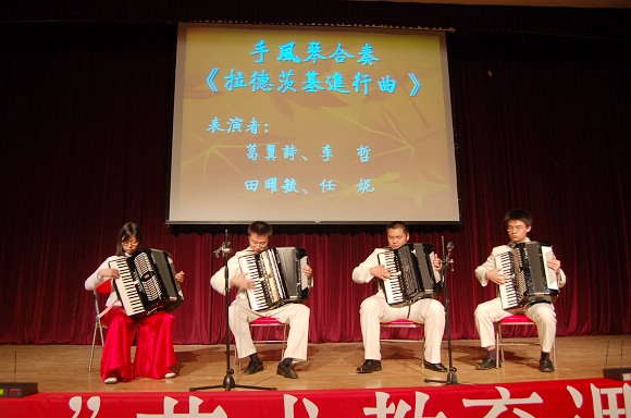 來自張清老師主講的《手風琴入門》課堂的同學們,以精湛的技藝表演了多個手風琴合奏曲目,優美的旋律征服了滿場觀眾。