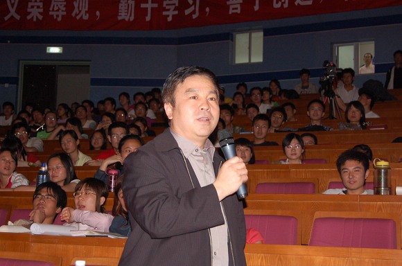 晚會結束時,藝術教育中心龐海芍主任發言,她說:“為藝術教育中心擁有一批優秀的年輕教師而自豪。這場演出目的是給廣大學生提供一個藝術實踐的舞臺,讓他們親身參與藝術創造的魅力,提高綜合素質。并展示藝術教育的成果。為了準備這場演出,總導演余鳳霞以及其他老師付出了遠遠大于32課時的教學任務,但他們從不計較,而是互相配合支持把演出做好。在他們身上體現的是愛崗敬業、團結協作、無私奉獻的精神!”老師們可貴的精神品質也贏得了同學們的陣陣掌聲。最后,楊賓副書記作了重要講話,充分肯定了藝術教育對培養大學生綜合素質和創新思維的重要意義。