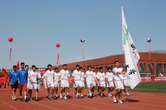 我校足球隊(duì)第一個(gè)步入開(kāi)幕式會(huì)場(chǎng)
