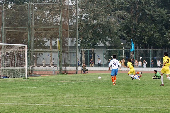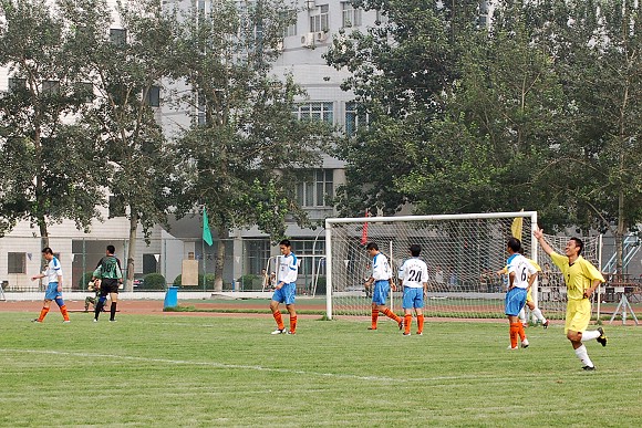 由于北京理工大學足球隊上周剛剛參加了在沈陽舉行的李寧中國大學生足球聯賽,連踢八場球,并勇奪冠軍,體力尚未完全恢復,因此在開場后的一段時間內,場上局面并不占優。