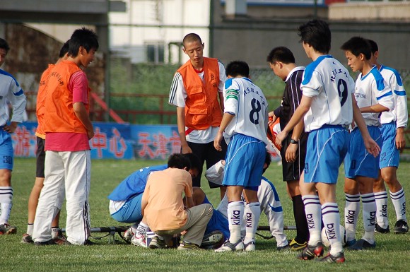 隊員除了在拼搶中受傷外,還有自己被場地給忽悠倒了的。