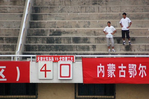 在整個(gè)上半場(chǎng)的比賽中,天津火車頭隊(duì)利用身高和體力的優(yōu)勢(shì),幾乎一直壓著我方來打,分別在比賽的第10分鐘、第20分鐘、第30分鐘利用沉底傳中、頭球射門和揀漏補(bǔ)射等方式各進(jìn)一球,幾乎奠定了比賽的勝局。