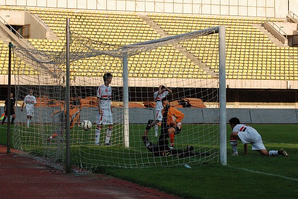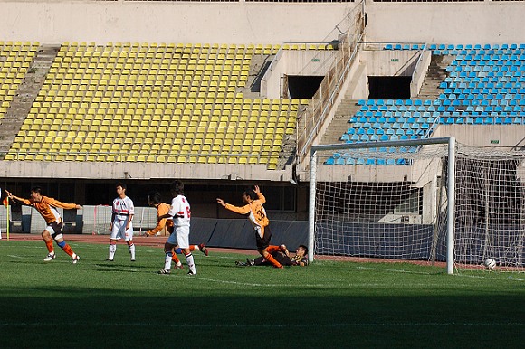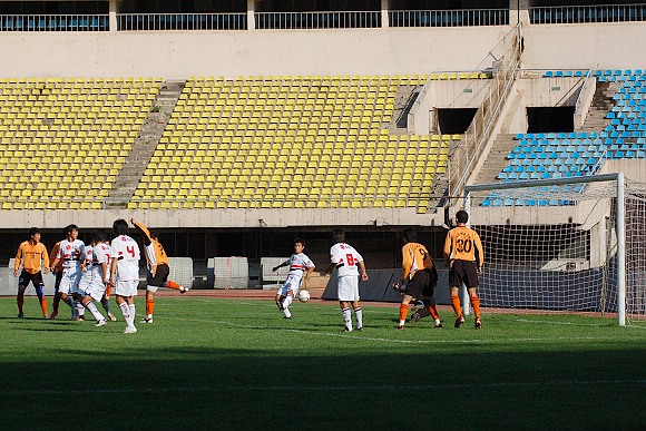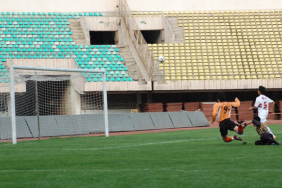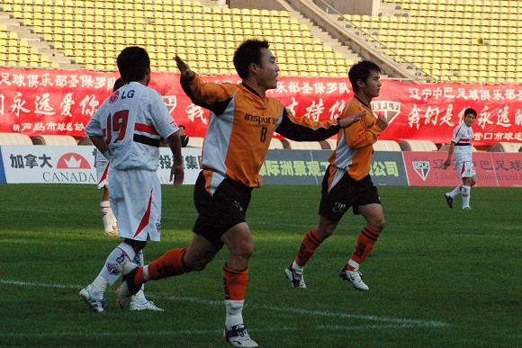 果然不出金指所料,開場僅僅7分鐘,遼寧中巴隊就利用一次沉底傳中的機會,在后方隊員的空檔中偷襲成功,以1:0領先。場上氣氛立即變得似乎有些沉重起來,莫非遼寧中巴最近的“遇強不弱,遇弱不強”的特點要再次發揚廣大?
