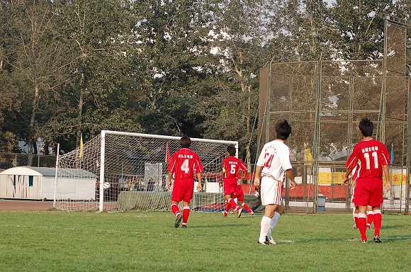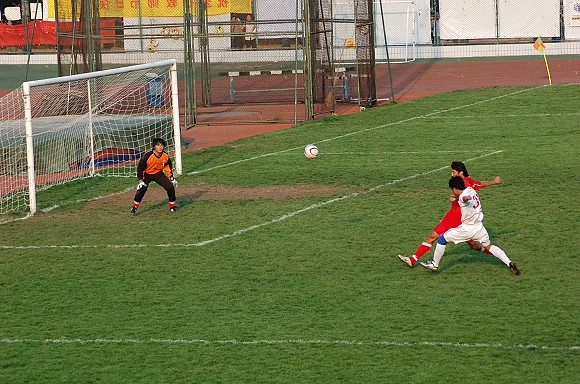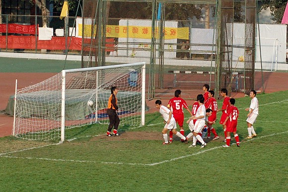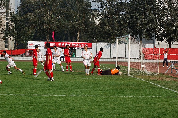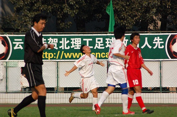 下半場比賽開始后,我方優勢更為明顯。比賽進行到70分鐘時,我校足球隊打了一個進球小高潮,首先由前鋒11號王強亂軍之中頭球破門,比分變為2:0.