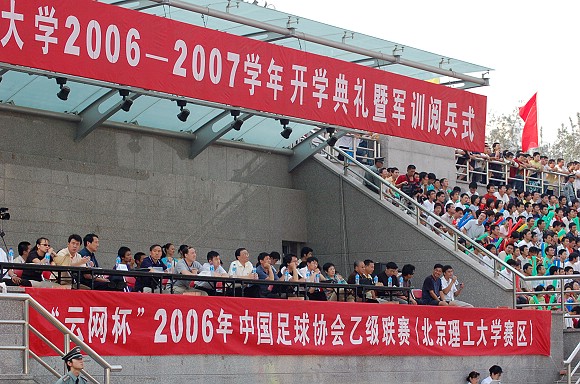 9月23日下午,“云網杯”2006年中國足球協會乙級聯賽(北京理工大學賽區)最后三輪的比賽拉開了帷幕,我校足球隊此次坐鎮主場迎戰天津東麗足球隊。在聯賽上半程的比賽中,我校足球隊受對方主場惡劣場地的影響,在客場曾以0:0與對方打成平局(點擊此處可進入相關鏈接)。此次主場作戰,又適逢2006級新生入校,全隊上下士氣高昂,決心給全校師生員工一個驚喜。校長匡鏡明,黨委副書記、副校長楊賓,黨委副書記、工會主席侯光明等學校領導也來現場觀戰。
