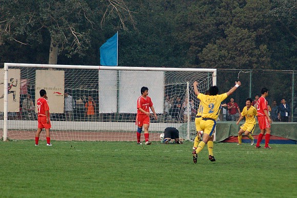 天津火車頭隊的隊員身高優勢化解了北京理工大學足球隊的一次次反攻。